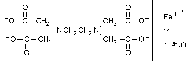 本品主原料為乙二胺四乙酸鐵鈉,又稱EDTA鐵鈉鹽,是一種無味易融同時(shí)具有生物活性的有機(jī)螯合鐵營養(yǎng)強(qiáng)化劑。1995年,聯(lián)合國WHO/FAO把乙二胺四乙酸鐵鈉作為一種新型營養(yǎng)添加劑。中國衛(wèi)生部則于1999年將其列為中國營養(yǎng)強(qiáng)化劑。它被廣泛用于食品、保健品、乳制品、藥品等,是理想的補(bǔ)鐵劑。