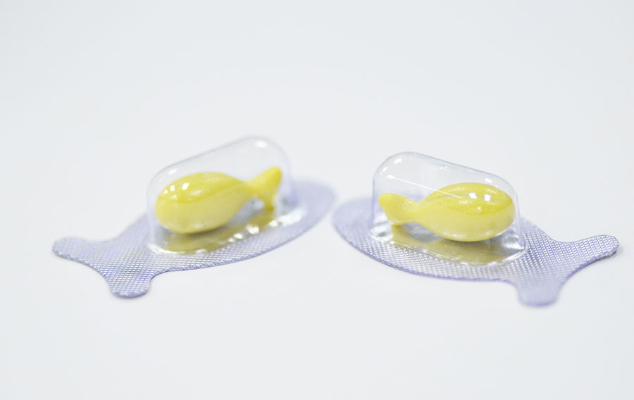 大小形狀:魚型、850mg/粒