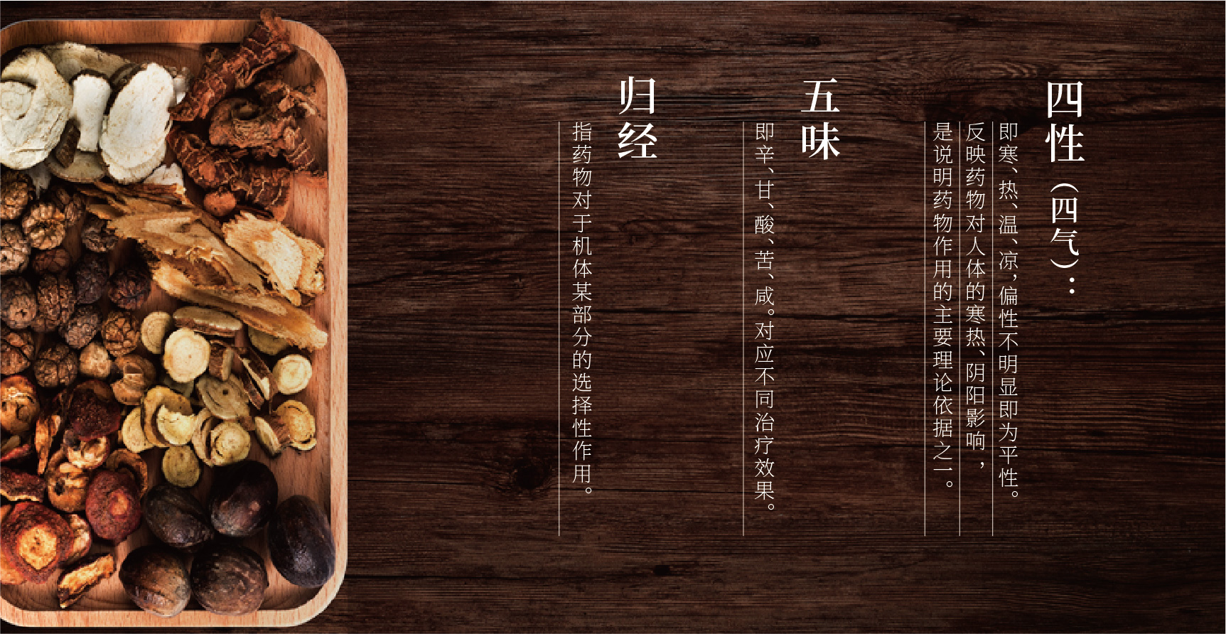 ——“四性” (四氣):即寒、熱、溫、涼,偏性不明顯即為平性。反映藥物對人體的寒熱、陰陽影響,是說明藥物作用的主要理論依據(jù)之一。