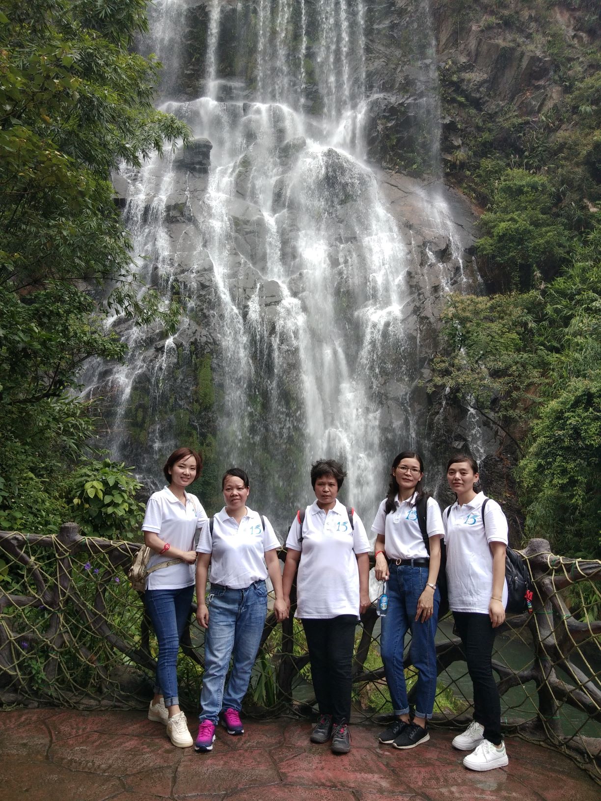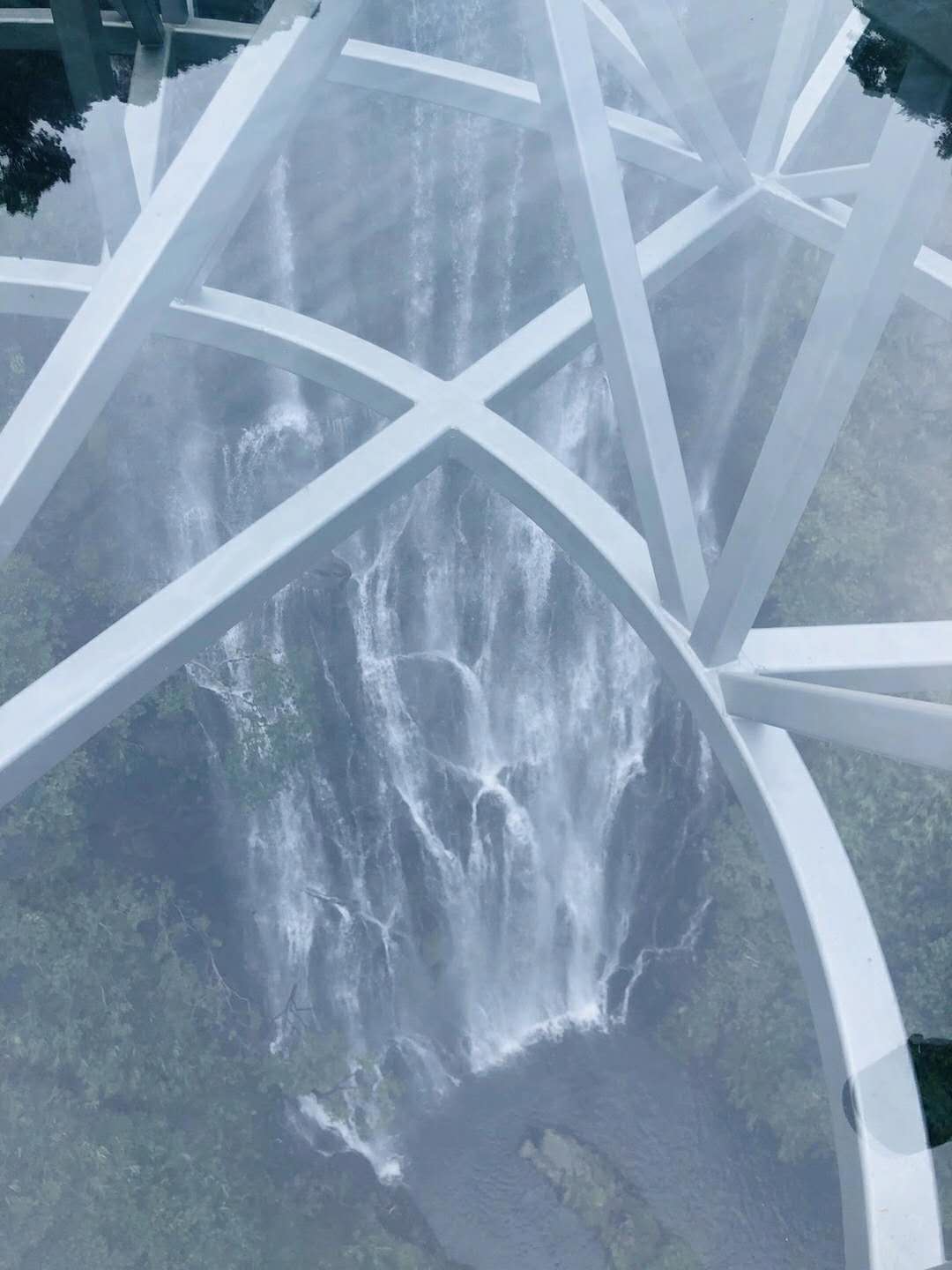 第一站是玻璃大峽谷。小伙伴們一路浩浩蕩蕩,沿著林間小路拾級而上,這里樹木郁郁蔥蔥,層層疊疊的深綠淺綠令人應接不暇,再加上無數(shù)白練飛漱其間,水霧彌漫,清幽醉人。帥哥美女們一路談笑風生,一路擺拍錄影,想把滿山的美景和此時此刻的好心情定格帶回家!