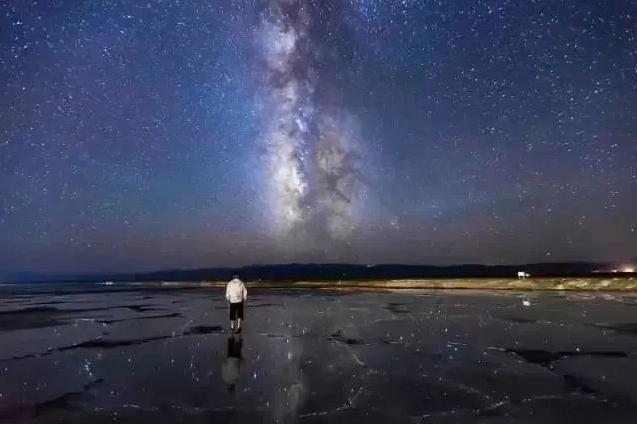 這是黑夜時的茶卡鹽湖,恢弘深邃